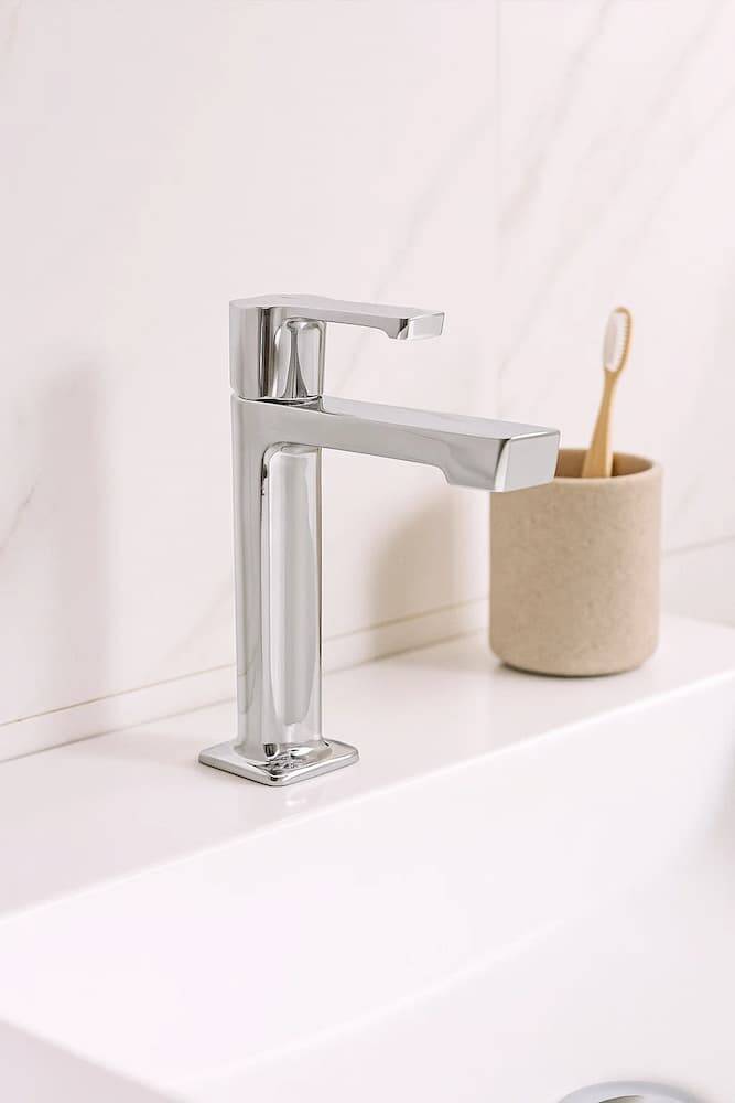 Moderniza tu baño con el Grifo Monomando Cromado. Su acabado brillante y diseño cuadrado lo convierten en el aliado perfecto para lavabos y baños actuales. Este grifo de lavabos está fabricado con materiales duraderos, este grifo combina estética y funcionalidad, asegurando precisión en el caudal de agua y un mantenimiento sencillo. Ideal para espacios  de baños elegantes y contemporáneos.